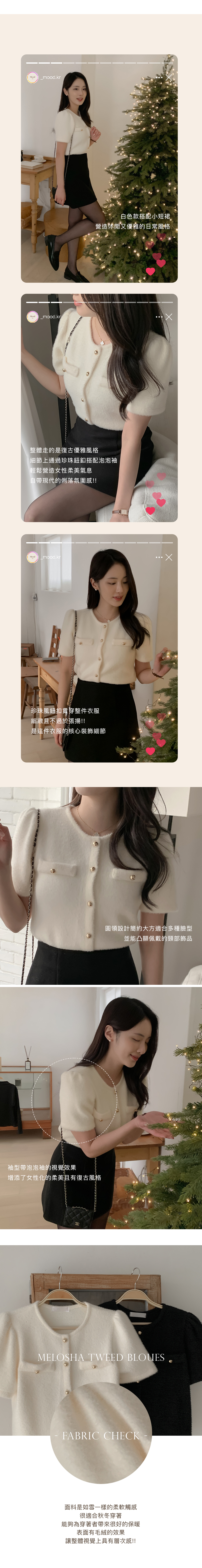 剪裁設計:圓領設計/手袖抓澎 /金釦設計