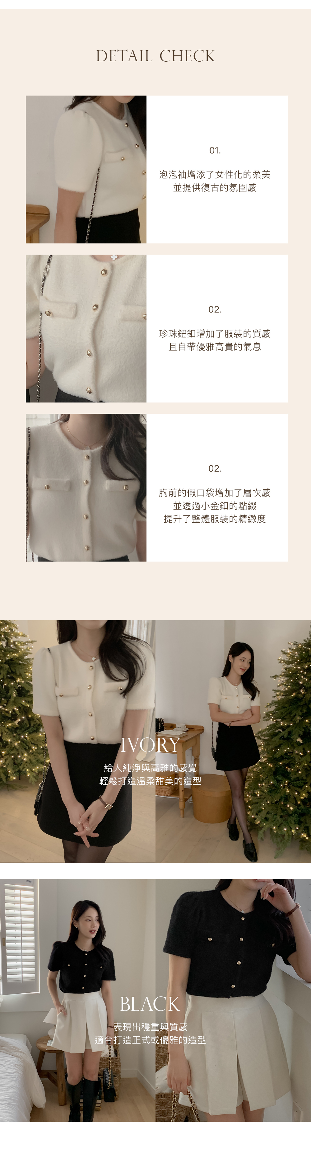 雪地白/經典黑都好適合在這年末或冬天聚會穿搭