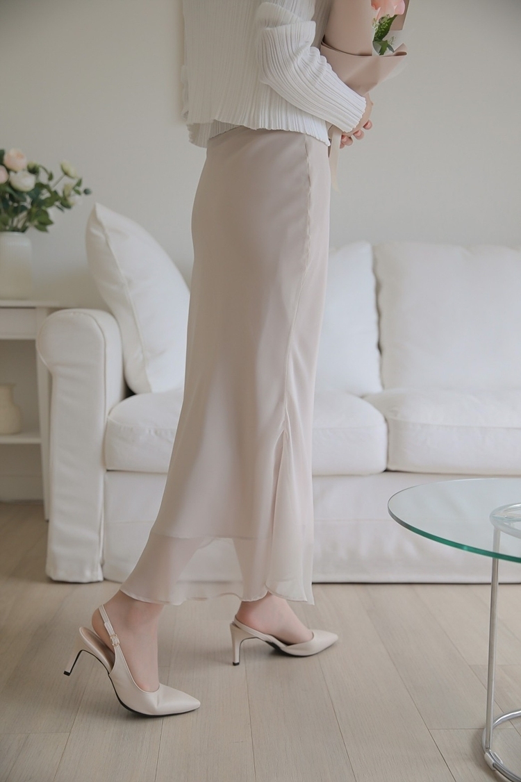 剪裁設計:緞面內襯/下擺微魚尾荷葉邊設計